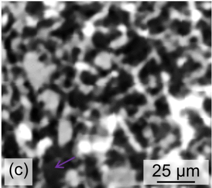 Das thermomechanische Verhalten gegossener Al-Si-Kolbenlegierungen ist stark abhängig vom Zustand des hoch zusammenhängenden hybriden 3D Netzwerks, bestehend aus primärem und eutektischem Silizium und intermetallischen Phasen, die in der α-Al-Matrix eingebettet vorzufinden sind. Die sehr ähnliche Röntgenabsorption von Silizium und der α-Al-Matrix stellt unter Verwendung von Labor-Röntgentomographiegeräten ein Problem für die örtliche Erkennung dieser Phasen und somit für die akkurate Segmentierung und Charakterisierung aller rigiden Phasen im Netzwerk dar. Eine Kombination von konventioneller Röntgen-, Synchrotron-Computertomographie und chemischen Tiefenätzungen derselben Legierung an derselben Stelle ermöglicht eine automatische Segmentierung und genauere Charakterisierung von Phasen über große, repräsentative Volumen und liefert somit die nötigen Informationen für eine Quantifizierung der gesamten 3D Mikrostruktur der Legierungen.