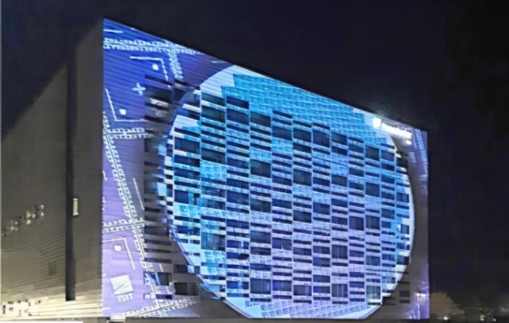 Eine Auswahl von Bildern aus der Forschung und Schadensanalyse aus dem Fraunhofer Institut für Siliziumtechnologie wurde u. a. auf der Fassade des Reinraums projiziert. Die Attraktion liegt in der Verbindung von Bild und