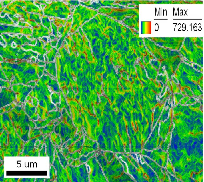 In dieser Arbeit wird die Wirksamkeit der Gefügeeinstellung durch äußere Belastung während der martensitischen Phasenumwandlung eines Maraging-Stahls (martensitaushärtender Stahl) 12Cr-9Ni-2Mo-0.7Al-0.35Ti aufgezeigt. Eine Kornfeinung der ehemaligen Austenitkörner wird durch wiederholtes Umwandeln durch Temperaturwechselbelastung erreicht, um industrierelevante Korngrößen zu erhalten. Allerdings zeigen diese nicht die gesamte Palette der 24 charakteristischen Varianten der Kurdjumov-Sachs-Orientierungsbeziehung des Martensits. Für den letzten Thermozyklus werden drei unterschiedliche Szenarien untersucht: i) Eine Probe wird vor der letzten Abkühlung bei einer höheren Temperatur geglüht, ii) eine Probe wird mit einer Zugspannung von 120 MPa belastet und iii) eine Probe wird während der Umwandlung unter Torsion beansprucht, die einer Von-Mises-Spannung von 120 MPa entspricht. Diese Untersuchung ist eine der Ersten, im Rahmen derer die Wirkungen einer kleinen Korngröße, einer hohen Versetzungsdichte und äußerer Belastungen simultan untersucht werden. Es werden Daten aus der orientierungsabbildenden Mikroskopie präsentiert, die aufzeigen, wie sich die Art der während der Umwandlung einwirkenden Belastung auf die endgültige Textur und die Verteilung des Grenzflächencharakters auswirkt.