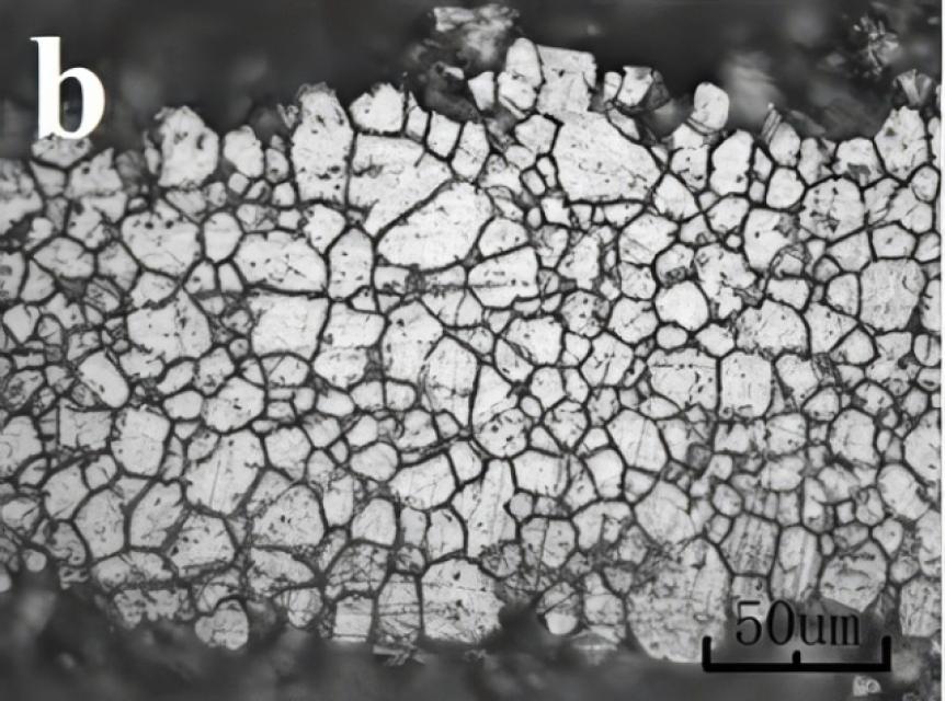 s being used for degassing of ultra-high vacuum components. The heat shield as-sembly of the furnace comprised of one molybdenum (Mo) front sheet, followed by four 304 stainless steel (SS) sheets. During prolonged service of the furnace, SS sheets developed thick black oxide scale. As a part of refurbishment drive, the SS sheets were subjected to chemical cleaning in 20 % HNO3 + 1.5 % HF, which caused severe thinning along the edges of some sheets. Detailed analysis of a damaged SS sheet showed that the damage was caused by severe sensitization of edge region which underwent extensive intergranular corrosion during chemical cleaning. Important reme-dial measures suggested to avoid similar failures included: