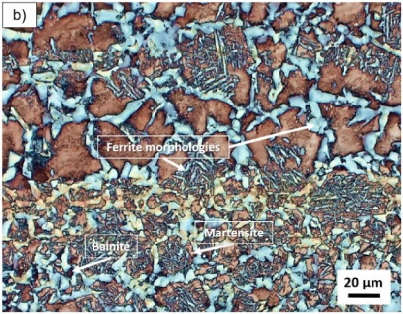 Mittels lichtoptischer Mikroskopie werden die Korngrößen des ferritisch-perlitischen Gefüges und entsprechende Phasenanteile ermittelt. Mit dem Rasterelektronenmikroskop werden die Lamellenabstände von Perlit untersucht. Darüber hinaus wird die Regelmäßigkeit der Perlitlamellen mithilfe eines maschinellen Lernansatzes beurteilt. Thermisch geätzte Austenitkörner werden mit einem Hochtemperatur-Laser-Scanning-Konfokal-Mikroskop bei 1000 °C betrachtet und mit aus Elektronenrückstreubeugungsmustern neu berechneten ehemaligen Austenitkörnern verglichen. Das Gefüge wird nach der Abkühlung und einer LePera-Ätzung analysiert. Mittels Elektronenrückstreubeugung werden Phase Maps erstellt.