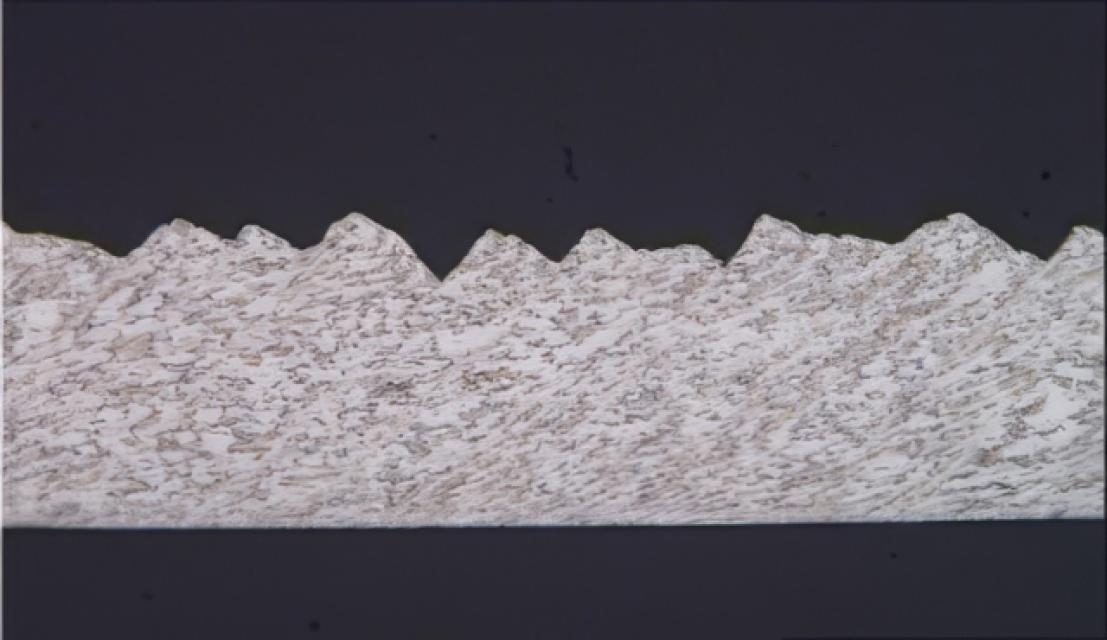 Hohe Temperaturen und ein stark ausgeprägter Segmentspan sind charakteristisch für die Titanzerspanung. Die Segmentspanbildung führt zu einer hochfrequenten mechanischen Wechsellast des Werkzeugs und begünstigt somit das Werkzeugversagen. Durch die Anwesenheit von Sauerstoff kommt es während des Spanbildungsvorgangs zu einer Vielzahl chemischer Wechselwirkungen. Welchen Einfluss der Sauerstoffgehalt bei der Titanzerspanung, insbesondere auf die Spanbildung hat, ist bisher jedoch unbekannt. Um Rückschlüsse auf den besagten Prozess ziehen zu können, wurden die Zerspanversuche unter Variation des Sauerstoffgehalts durchgeführt und die dabei erzeugten Späne metallographisch untersucht. Mittels Korngrenzenätzung konnte so die verschieden stark ausgeprägte Segmentierung im Span sichtbar gemacht und anschließend ausgewertet werden.