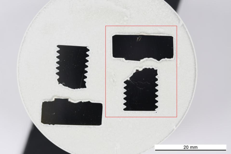 Im Rahmen einer kleineren Inspektion an einer Großgasturbine wurde der Sechskantkopf einer zur Befestigung einer Metallplatte im Lufteinlass verwendeten Schraube auf dem Boden des Lufteinlassgehäuses gefunden [1, 2]. Die zugehörige Unterlegscheibe konnte nicht gefunden werden. Es wird angenommen, dass diese von der Turbine angesaugt wurde und am Verdichter moderate Schäden verursacht hat. Die Inspektion begann nach 83.500 Betriebsstunden. Lediglich eine einzige gebrochene Schraube wurde gefunden. Die entsprechende Schraube brach aufgrund einer durch Lochkorrosion hervorgerufenen Spannungsrisskorrosion (SpRK), möglicherweise unter Mitwirkung von Spaltkorrosion.